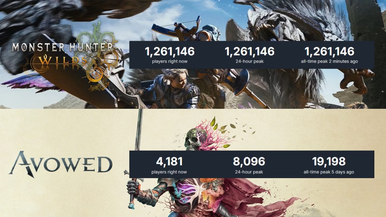 萬眾期待的卡普空新作《魔物獵人 荒野》今日終於正式發售,從這款遊戲首次公開至今已有 4 百多天,讓不少人迫不及待開玩啟動全新的獵人冒險旅途。雖然 PC 版在下午 1 點才開放遊玩,比主機版慢了 13 個小時,但上線 Steam 不到半天就破了百萬玩家同時在線數量,這也是系列中最高記錄的作品。推主 Grummz 發文比較了本作與不久前( 2 月 19 日 )推出的遊戲《宣誓》( Avowed ),並揶揄:“這就是遊戲記者說過的,《宣誓》獲得了巨大成功”。從圖片可以知道,微軟 Xbox 旗下黑曜石工作室的《宣誓》的同時在線數量玩家是 1.9 萬人,與《魔物獵人 荒野》可謂天淵之別。